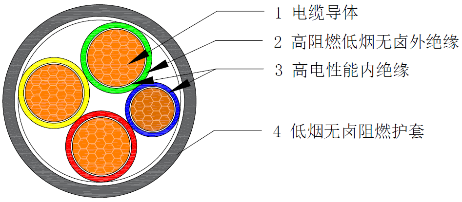 2、采用辐照交联工艺,确保电缆的机械物理性能、电气性能和低烟无卤阻燃性能。